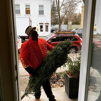 A confirmation email will be sent with your exact delivery timeframe. On delivery day, our Nutcracker soldiers arrive in full uniform to bring your Calgary Christmas tree right into your home, place it securely, and ensure it stands beautifully.